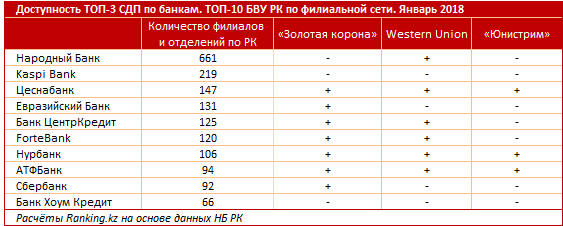 Со всеми системами денежных переводов из ключевой тройки наиболее активных работают всего три крупных банка: АТФБанк, Нурбанк и Цеснабанк.