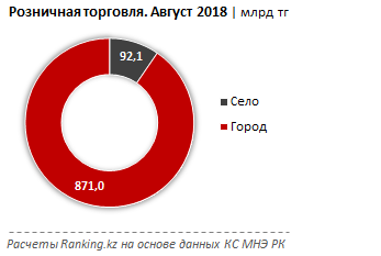 Судя по официальным сведениям, на сельскую местность пришлось лишь менее 10% всех объёмов розничной торговли. Учитывая, что по свежим данным Комитета по статистике на начало августа городское население занимало лишь 57,6% от всех жителей страны, подобные цифры весьма сомнительны.