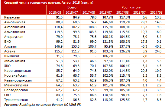 С учётом того, что 90,4% объёмов официально проведённых по кассе покупок пришлось на города, средний чек розничной торговли рассчитывался на городских жителей.
