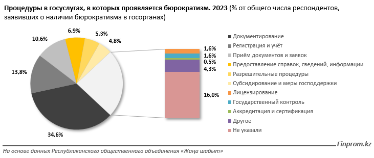 В рамках исследования специалисты РОО также изучили общественное мнение о бюрократии в госорганах. Оказалось, что в большинстве случаев (98,1%) респонденты не сталкивались с бюрократизмом при оформлении документов. По ответам оставшихся 1,9%, которые в своём взаимодействии с чиновниками встречали волокиту и отказы, авторы отчёта составили список самых забюрократизированных процедур. Чаще всего опрошенные называли в числе таких процедур услуги по документированию (34,6%), регистрации и учёту (13,8%), приёму различных документов и заявок (10,6%).