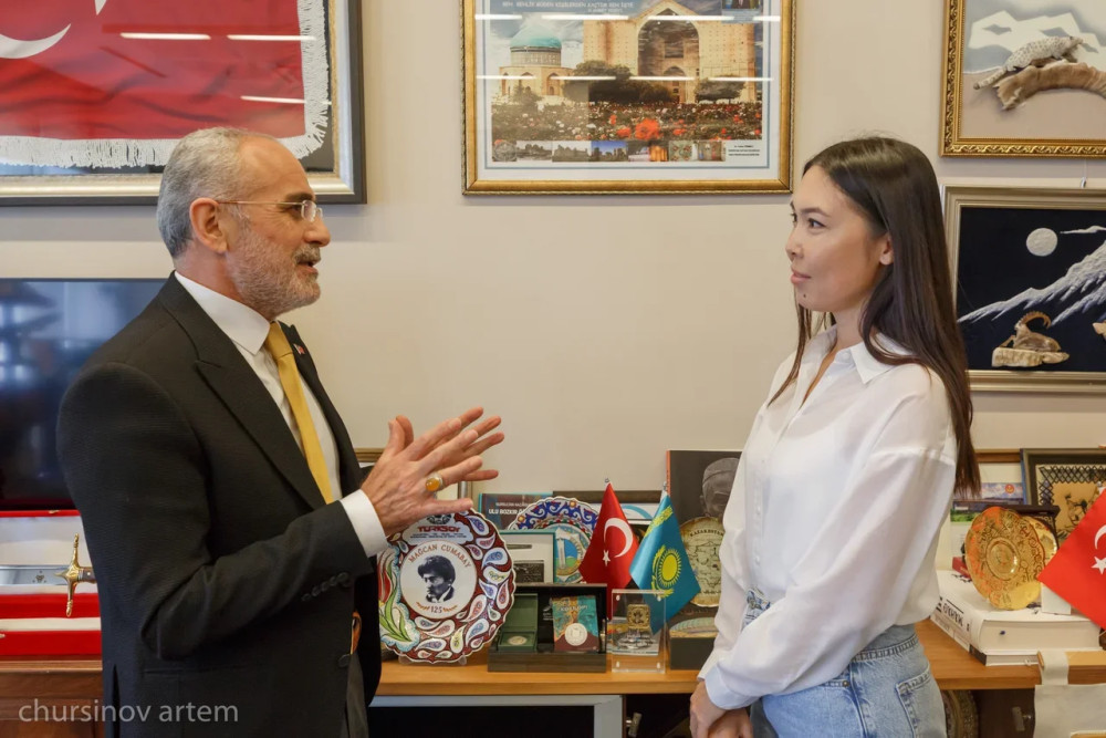 "Казахстан — один из важнейших политических и экономических партнеров Турции. Отношения между двумя братскими странами многогранны и имеют стратегический характер, и в основе их лежат исторические, культурные и духовные связи. Одним из первых и главных событий в рамках сотрудничества стало создание Международного казахско-турецкого университета имени Ходжи Ахмеда Ясави в Туркестане. Соглашение по поводу создания вуза было подписано правительствами двух стран 31 октября 1992 года в Анкаре. А позже оно было ратифицировано Великим национальным собранием Турции 29 апреля и вступило в силу 4 мая 1993 года. В университете сейчас обучаются студенты из 32 стран мира. Это около 12 тысяч учащихся, они получают образование на казахском, турецком, русском и английском языках по 54 программам бакалавриата, 30 магистерским и 11 докторским программам. Кроме того, семь тысяч студентов вуза проходят дистанционно обучение по 11 специальностям в образовательном центре "TÜRTEP" в Анкаре. МКТУ играет большую роль в укреплении турецко-исламского мира, способствует его миру, процветанию и безопасности", — рассказал Ялчин Топчу.