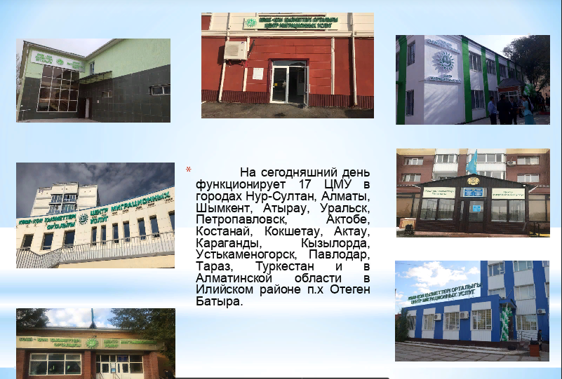 12 января прошлого года в столице открылся первый в Казахстане Центр миграционных услуг. Сегодня таких центров по стране насчитывается 17 и охватывают они всю страну. Главная цель центров – улучшение оказания государственных услуг иностранцам, прибывшим в нашу страну, создание для них условий и сокращение сроков получения трудового патента на работу.