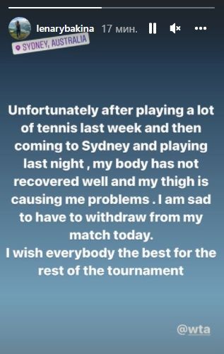 Позднее в Instagram Елена Рыбакина объяснила причины своего снятия с турнира.