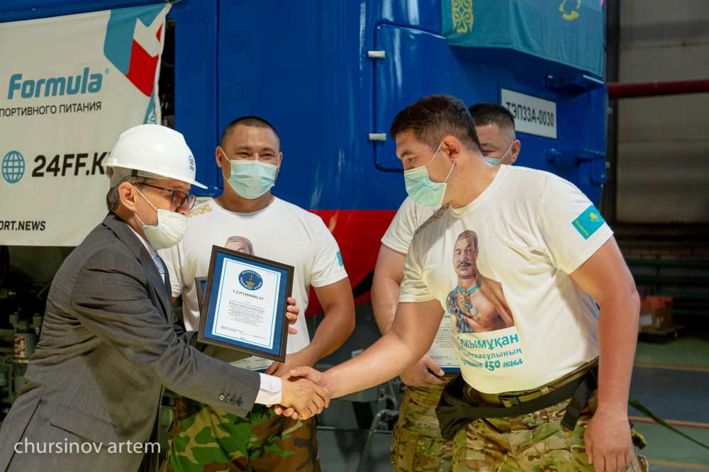"Мы пошли на встречу к ребятам и создали площадку для их тщательной подготовки. Мы наблюдали за тем, как они усердно тренировались. Я рад, что казахстанские спортсмены возрождают мужество казахских батыров, их силу и волю. Особенно приятно, что данный рекорд мы устанавливаем на нашей площадке "Локомотив құрастыру зауыты". Это исторический момент, который в дальнейшем станет примером для подрастающего поколения", - отметил президент АО "Локомотив құрастыру зауыты" Марат Тлеубаев.