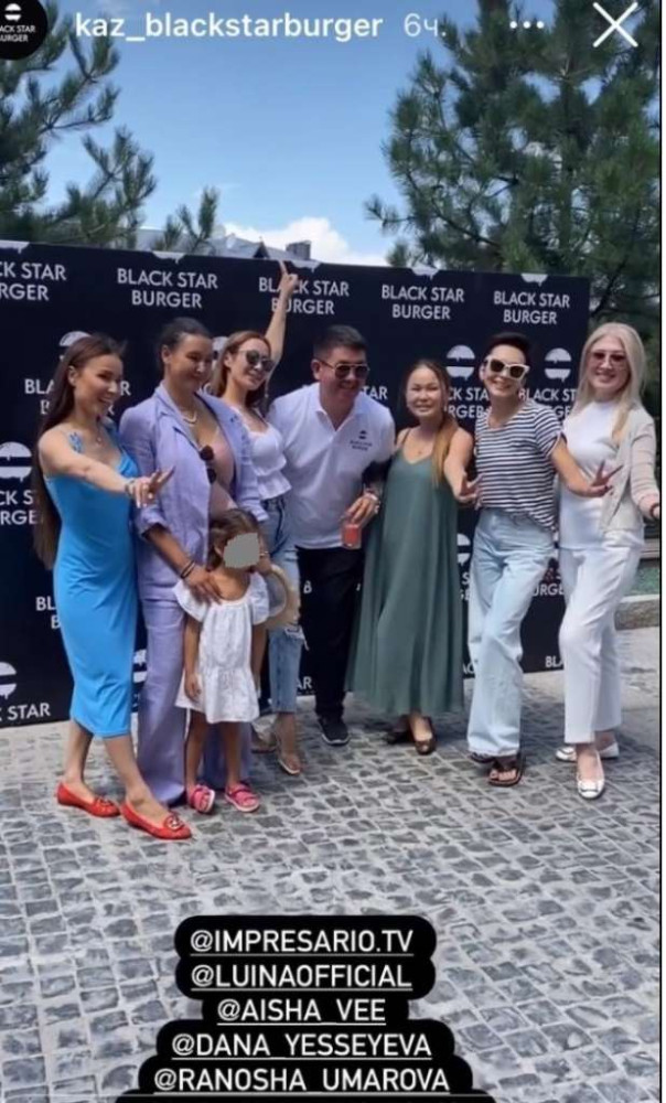 Таким образом, в сторис Black Star Burger Kazakhstan отметились режиссер Акан Сатаев, актер Санжар Мади, певицы Луина, Лидия Досалина, Тамара Асар и Айдана Меденова, вайнеры Мейиржан Туребаев и Дана Есеева, актриса Рано Умарова, дуэт Беркут и Аиша и другие.