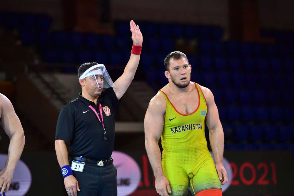 Первым на ковер вышел Ескали Даулетказы. В квалификации категории до 86 килограммов ему противостоял Унербат Пуревьяв. Казахстанец владел преимуществом, ведя в счете 8:2. Однако меньше, чем за минуту до конца схватки монгольский спортсмен перевернул ход встречи. Он сравнял счет и стал победителем.