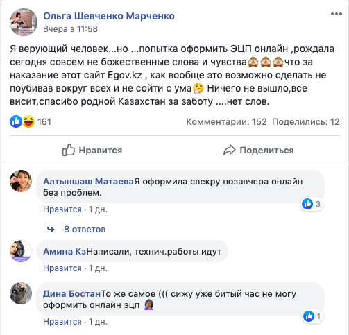 Только в одной группе в Facebook можно насчитать десятки подобных нареканий в адрес Egov.