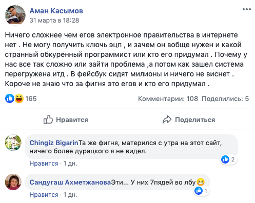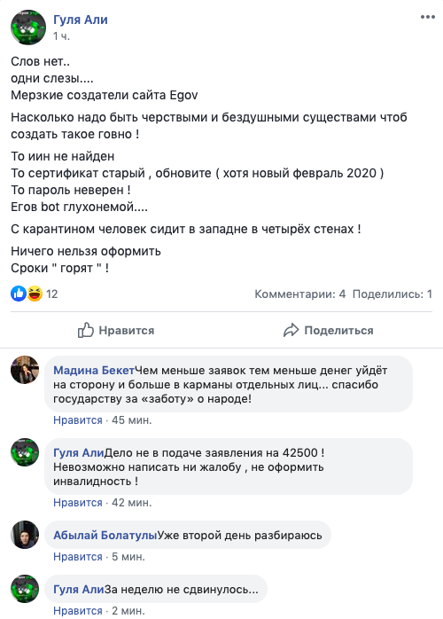 Казахстанцы сравнивают использование портала с квестом. Ситуация усугубилась тем, что документы на получение социальной помощи от государства в размере 42 500 тенге, положенная определенной категории лиц, также должны подаваться через Egov.