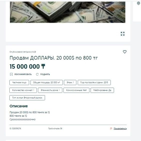Казахстанцы продают доллары на онлайн-сервисе объявлений OLX, передает BaigeNews.kz.