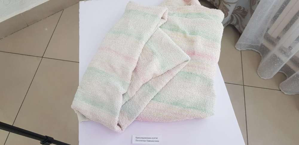О могучем телосложении Кажымукана говорит еще один экспонат – его личное полотенце. Его длина, как уточнила Меруерт Ескермес, два метра, ширина – метр тридцать. Оно пропитано потом славного предка.