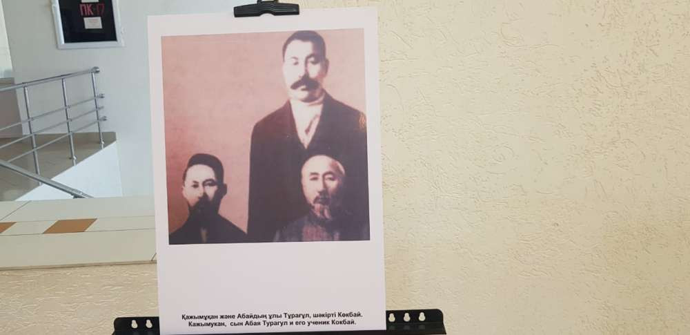 "Большую часть своей жизни Кажымукан провел за границей. По возвращении на родину его звали на многие важные мероприятия, в том числе государственной важности. Вот фотография с сыном Абая Кунанбаева Турагулом и его учеником Кокбаем", − отметила праправнучка.