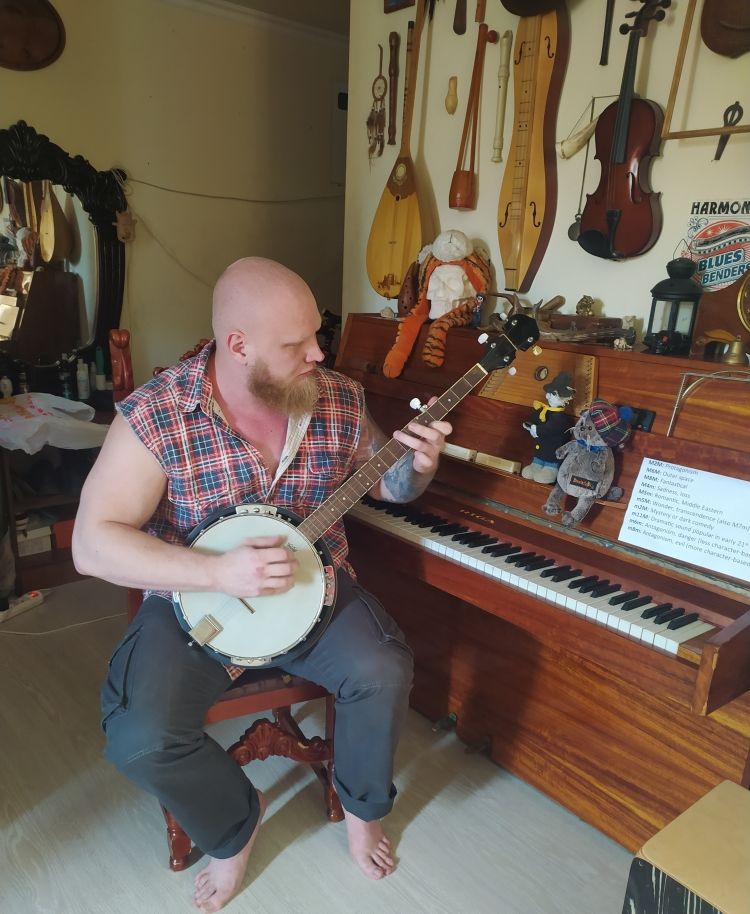 Из последних инструментов, которые освоил мастер — укулеле (гавайская четырёхструнная миниатюрная гитара, используемая для аккордового сопровождения песен и игры соло — прим. авт.) и банджолеле (четырехструнный инструмент с небольшим корпусом укулеле и пластиковой мембраной банджо, имеет звук более звенящий и резкий чем укулеле — прим. авт.).