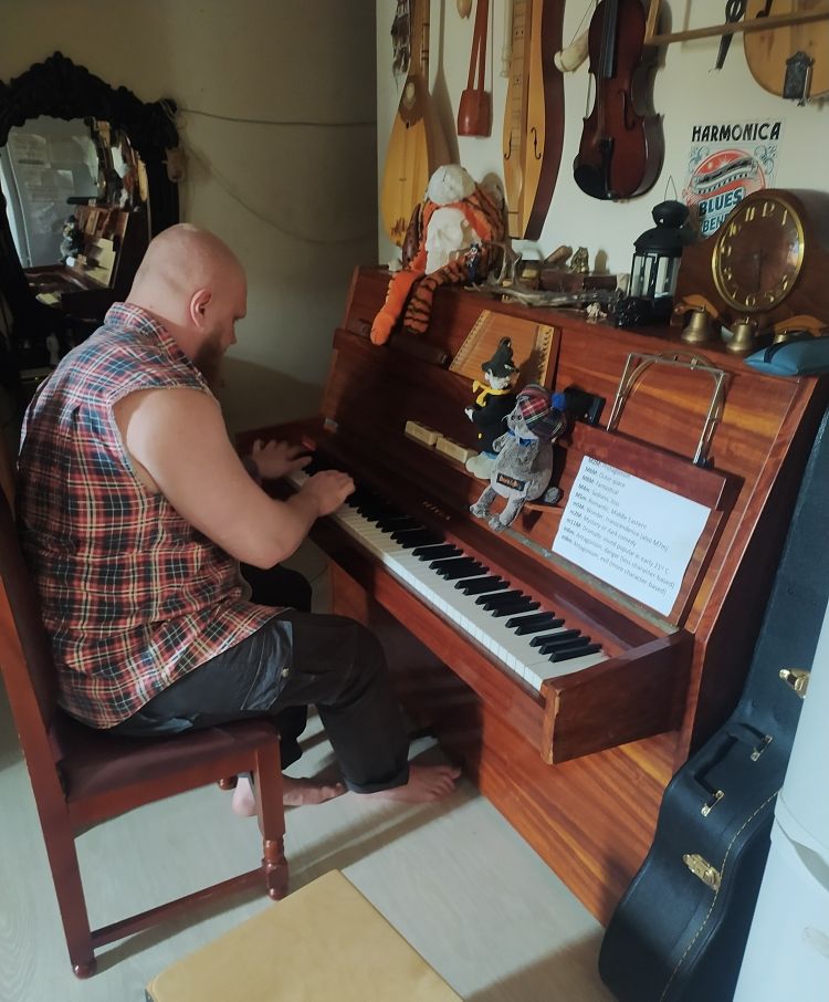 Некоторые композиции он сыграл, сев за фортепиано. Пробирает до мурашек. Освоил Виталий клавишные около восьми лет назад и до сих пор совершенствование полученных навыков продолжается.
