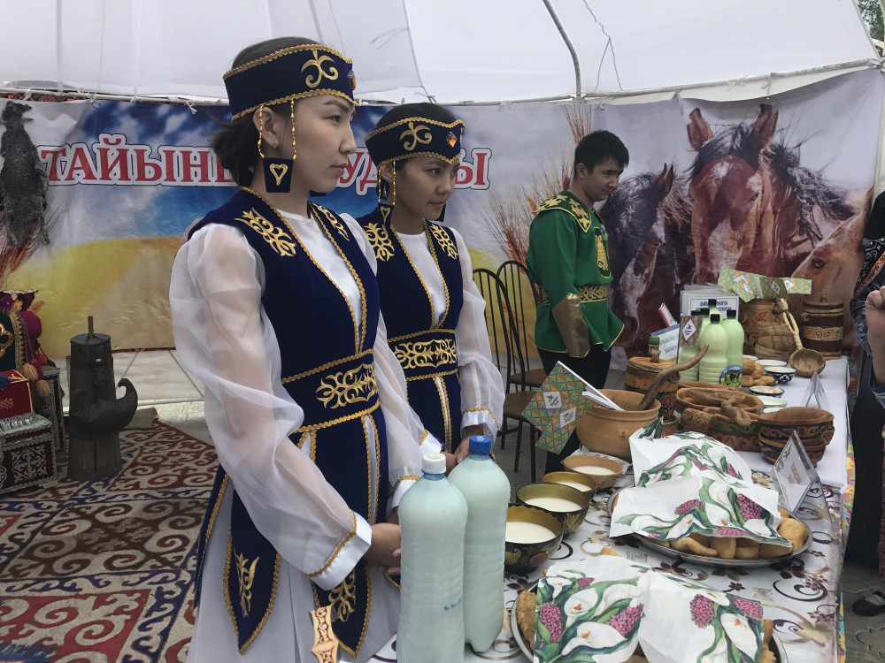 А на Театральной площади развернулись палатки, в которых всем желающим предлагали попробовать бешбармак, вкусовые качества которого оценивали эксперты Ассоциации рестораторов и отельеров и разные виды кумыса.