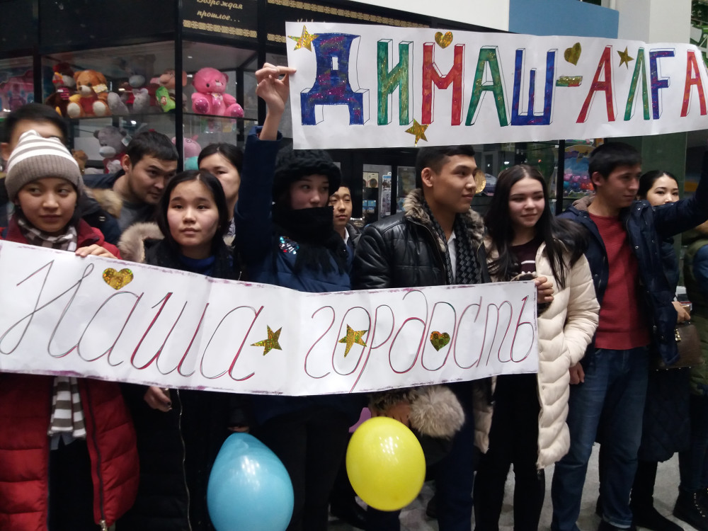 Студенты медицинского колледжа, где учился Димаш, пели его песни, школьники зачитывали стихи собственного сочинения, посвященные певцу.