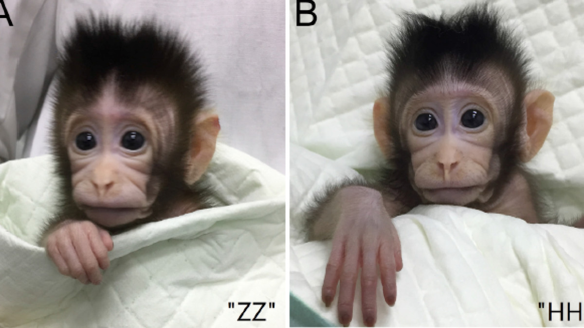 В новой работе ученые из Государственной лаборатории нейробиологии приматов Китайской академии наук под руководством Цян Суня (Qiang Sun) сообщили о рождении двух здоровых детенышей яванской макаки (Macaca fascicularis), «зачатых» методом переноса ядра.