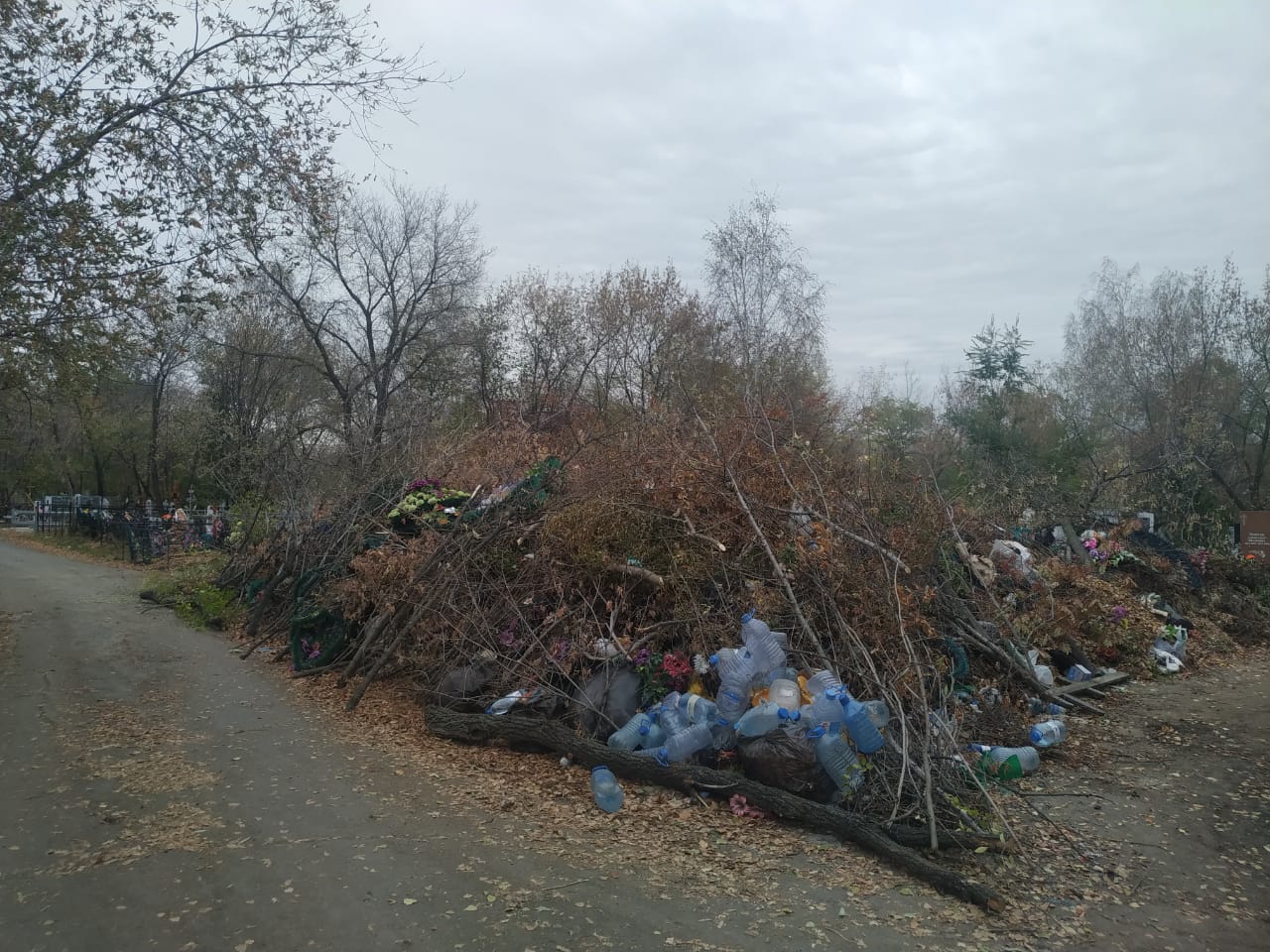Свалка ежедневно растёт, захватывая новые территории и того и гляди начнёт поглощать расположенные рядом могилы усопших.