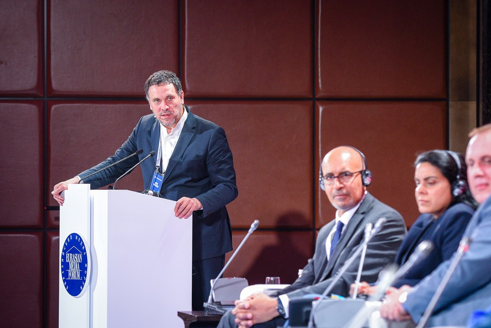 Евразийский медиа форум – международная дискуссионная площадка. Ежегодно она собирает в Казахстане более 600 делегатов из 60 стран мира. Форум проходит в виде открытого диалога на самые актуальные темы современности, общая тема в этом году - "15 лет эволюции: Как меняется мир и как мир меняет нас".