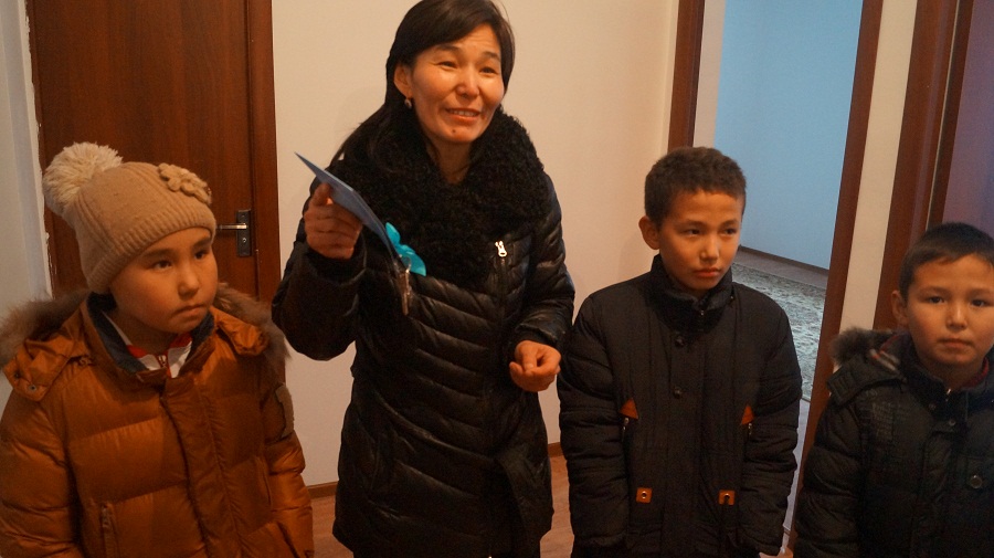 Для Гульмайры Каякбаевой и ее четверых детей, самому младшему из которых 7 лет, была полной неожиданностью новость от том, что их семья теперь переедет в просторную трехкомнатную квартиру.