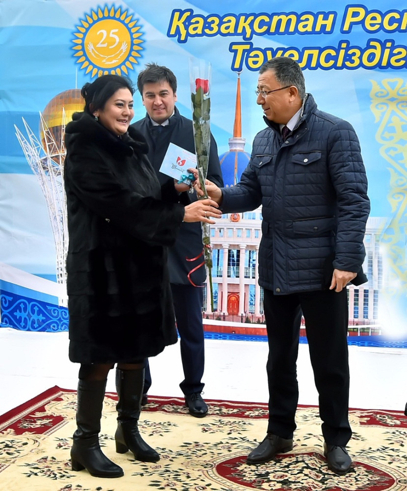 «В год празднования 25-летия независимости страны вы получили новые квартиры. Это один из ярких периодов вашей жизни и пусть таких моментов будет больше. Искренне желаю вам в Новом году процветания и благополучия», - сказал Жансеит Туймебаев.