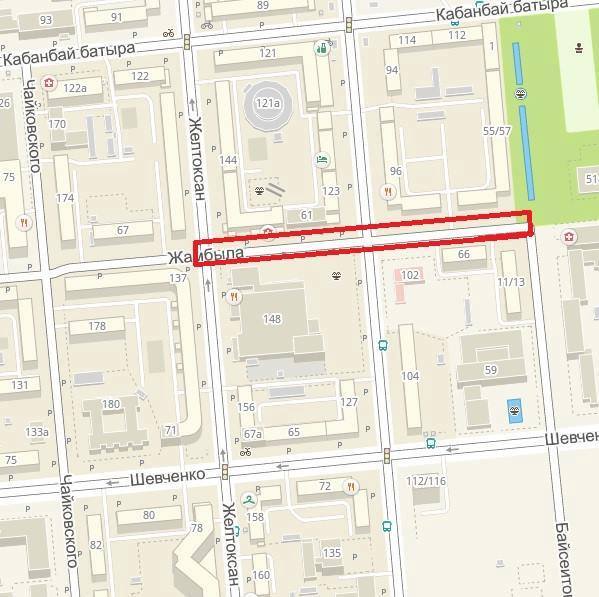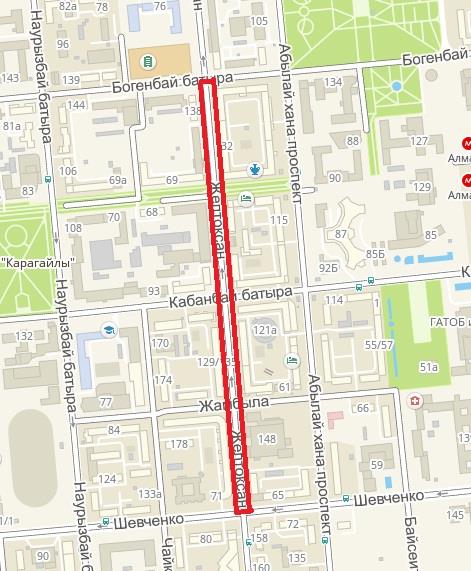 Пятый участок будет открыт по ул. Желтоксан, на протяжении от ул. Шевченко, до ул. Богенбай батыра.
