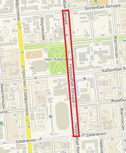 Седьмой участок будет находиться по ул. Айтеке би - от ул. Фурманова до ул. Тулебаева.