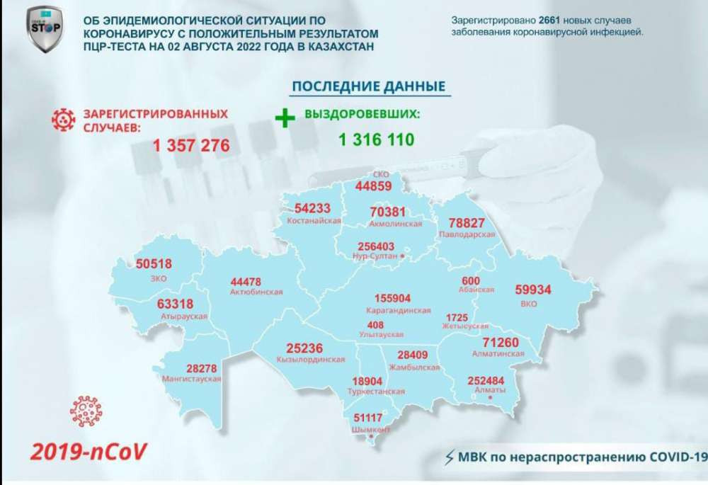 За прошедшие сутки в Казахстане зарегистрирован 2661 новый случай заболевания коронавирусной инфекцией, передаёт