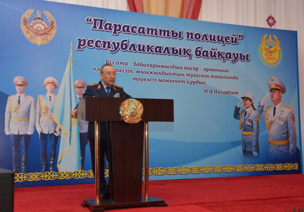 В этом году в конкурсе «Парасатты полицей» приняли участие 95 полицейских разных национальностей, представляющие 19 команд из всех областей Казахстана, которые показали свое умение, артистизм и смекалку в различных творческих заданиях, конкурсе на знание профессиональных терминов, умении красиво и правильно излагать свои мысли на государственном языке и т. д.