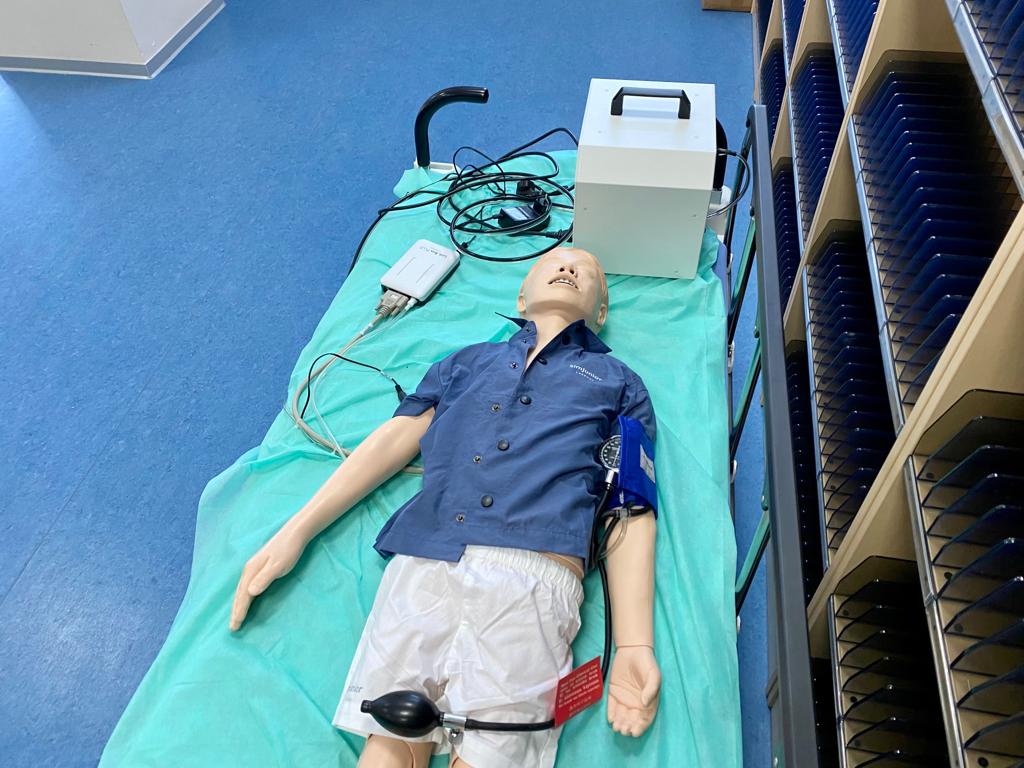 "В комнате установлены камеры и микрофоны, я могу дистанционно наблюдать за действиями своих студентов, менять обстоятельства, сценарий, симптоматику. Манекен при этом моргает и дышит, а на экране видно его сердцебиение. Если вдруг врачи и студенты сделали что-то не так, я с планшета могу остановить ему сердце. Тогда манекен не моргает, не дышит, у него начинается цианоз и синеют губы. В этом случае студенты должны действовать в соответствии со сценарием - проводить реанимацию", - сказал спикер.