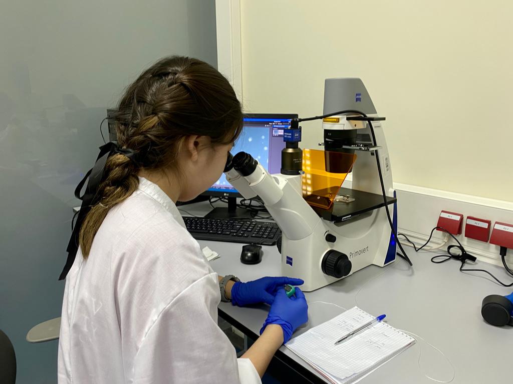 “Мы занимаемся изучением рака мочевого пузыря и выращиваем клетки. Сейчас я добавляю различные рецепторы в раковые клетки, чтобы понаблюдать реакцию”, - рассказала девушка.