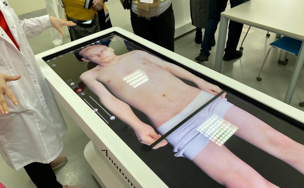 "Большое преимущество в том, что, когда студенты сами отрабатывают эти навыки, при наведении курсора или нажатии пальцем на любую деталь и часть тела, происходит озвучка в виде аудио-аннотации. Таким образом стол сам “рассказывает”, какая это часть тела, орган система и так далее. Например, сейчас вы видите на столе кровеносную систему, нервную систему, лимфатические узлы, на каждом этапе присутствует информационное сопровождение. Если студенты медицинских университетов проводят препарирование трупов вживую, то наши студенты могут сделать это на диссекционных 3D-столах. В этом есть ряд преимуществ, такой метод считается экологичным, поскольку не используется формальдегид", - добавила сотрудник лаборатории.
