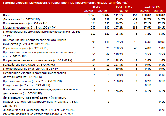 С января п осентябрь в Казахстане зарегистрировали 1600 коррупционных уголовных преступлений. Это на 11,1 процента больше, чем в прошлом году, передаёт BaigeNews.kz со ссылкой на Ranking.kz.