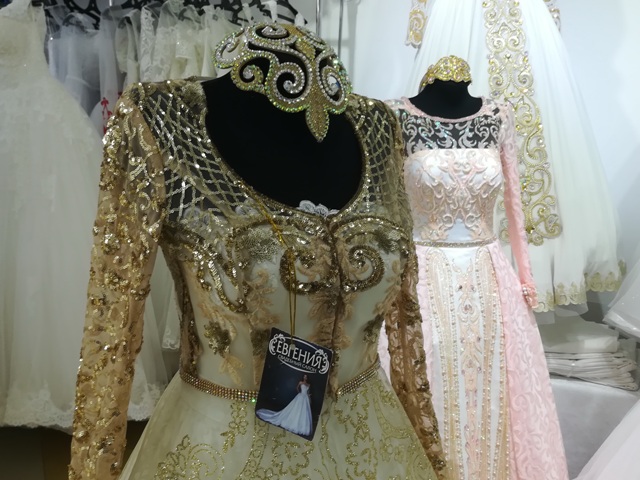 Все её платья и элементы наряда расшиваются камнями, стразами, жемчугом и стеклярусом вручную. Отсюда и относительно высокая цена на наряды. Цена на саукеле ручной работы начинается от 35 тысяч, самое дорогое платье, расшитое вручную, стоит 350 тысяч тенге. Но спрос на такой наряд есть: невесты не жалеют средств, чтобы на торжестве выглядеть идеально и всем запомниться.