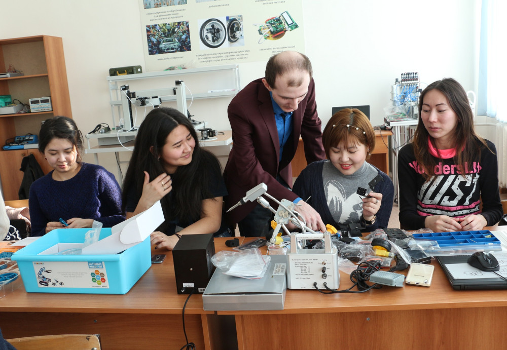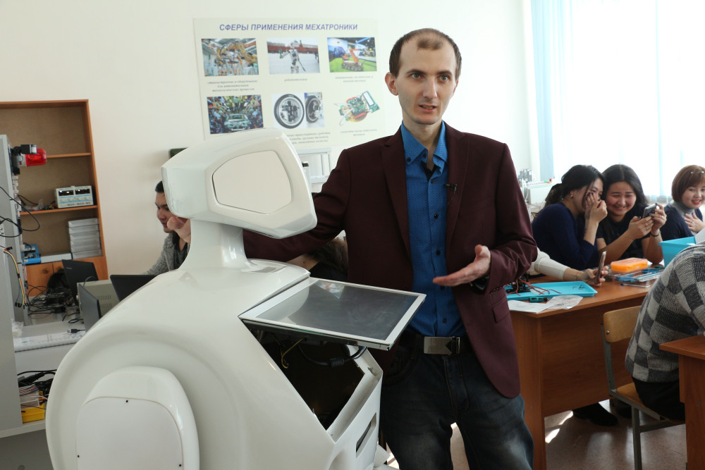 Цель – обучить специалистов, которые без проблем в будущем смогут работать на инновационных предприятиях, таких как, например, ТОО «СарыАрка АвтоПром», АО «Агромашхолдинг». Обучаться и оттачивать практические навыки программирования студенты будут непосредственно на роботах. Одного из них уже подготовили к работе и успели дать имя – Мехатроник.