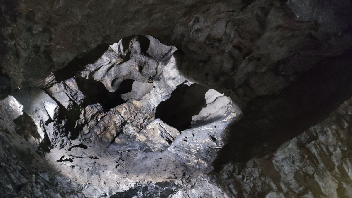 Сразу после каменного проёма приходится наклоняться из-за низких сводов, но через пару метров картина кардинально меняется. Небольшая, 3 на 2 "прихожая" пещеры сменяется огромным залом с причудливыми потолочными сводами, гротами. До 2017 года люди спускались к озеру по грудам камней и светили подручными осветительными приборами. Но 6 лет назад всю внутренность пещеры привели в соответствие с туристическими стандартами: проложили деревянный мост из лиственницы. Кстати, выбор дерева не случаен. Эта ценная порода в сырости только крепнет, а внутри пещеры всегда холодно, температура варьируется от 7 до 10 градусов и зимой, и летом.