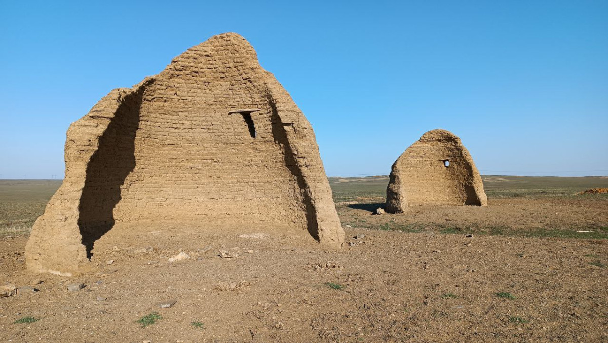 Неизвестные саманные могилы из сырцового кирпича с окошками в верхней части сооружения похожи на осыпавшиеся юрты. Кто в них похоронен - неизвестно.