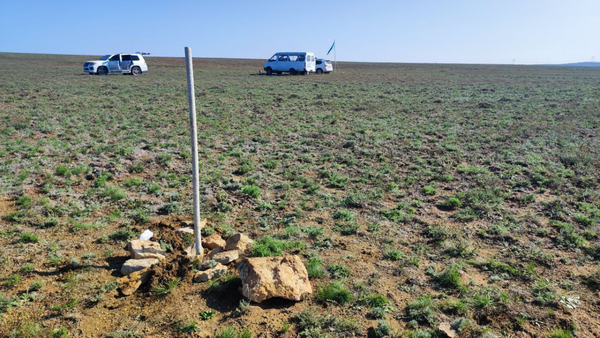 Новый мемориал утвердили в землю, предварительно укрепив основу камнями. Его подготовил председатель краеведческого общества Марат Сасанов. Он же прикрутил на плиту таблички на двух языках - казахском и русском, которые повествуют о предназначении камня и координатах.