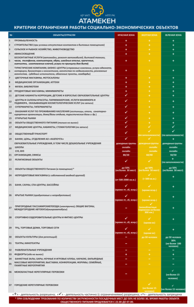 В Казахстане заработали критерии работы бизнеса в "зеленой", "желтой" и "красной" зонах санитарно-эпидемиологической обстановки, передает BaigeNews.kz со ссылкой на Atameken.kz.