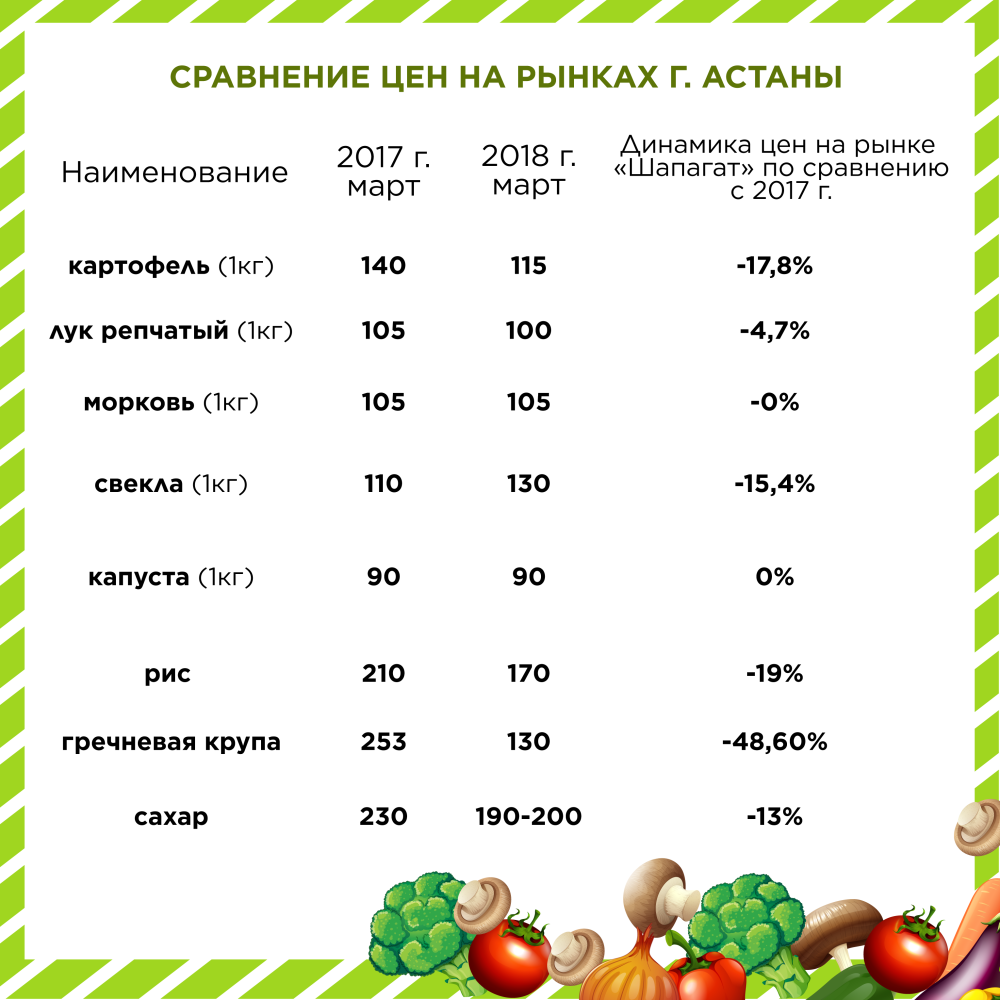 "Картофель в этом году дешевле на 25 тенге, лук на 5 тенге, капуста без изменений", – проинформировали в ведомстве.