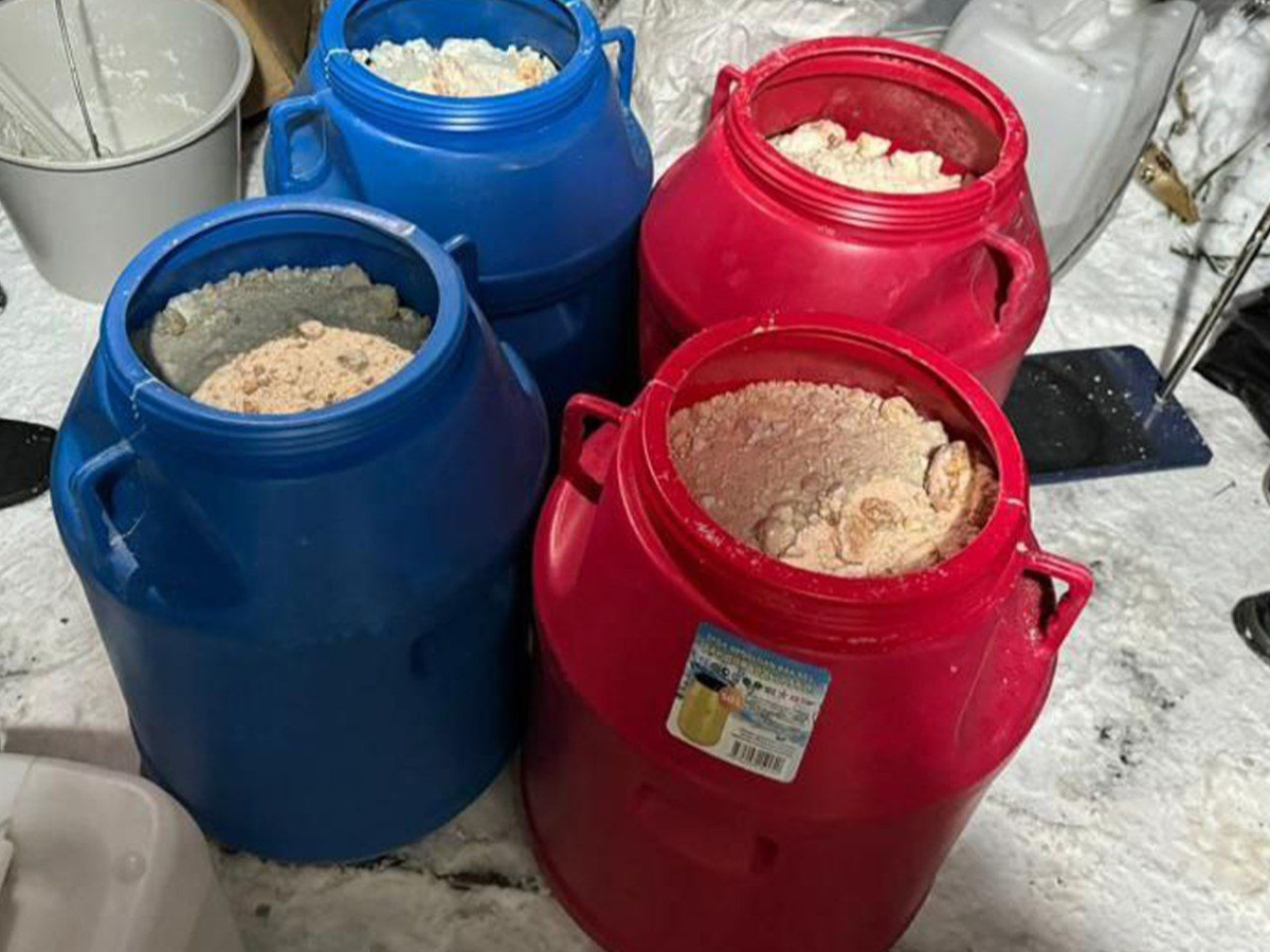 Сотрудники нацбезопасности изъяли более 200 килограммов готовой продукции – наркотика мефедрон и 100 литров сырья.