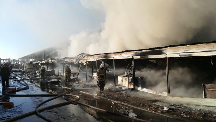 Потушить пожар на территории рынка "Бек", который начался около 9 утра, пожарным удалось уже через час. Жертв и пострадавших нет. Общая площадь возгорания, по информации Комитета по чрезвычайным ситуациям, составила 700 кв.м.