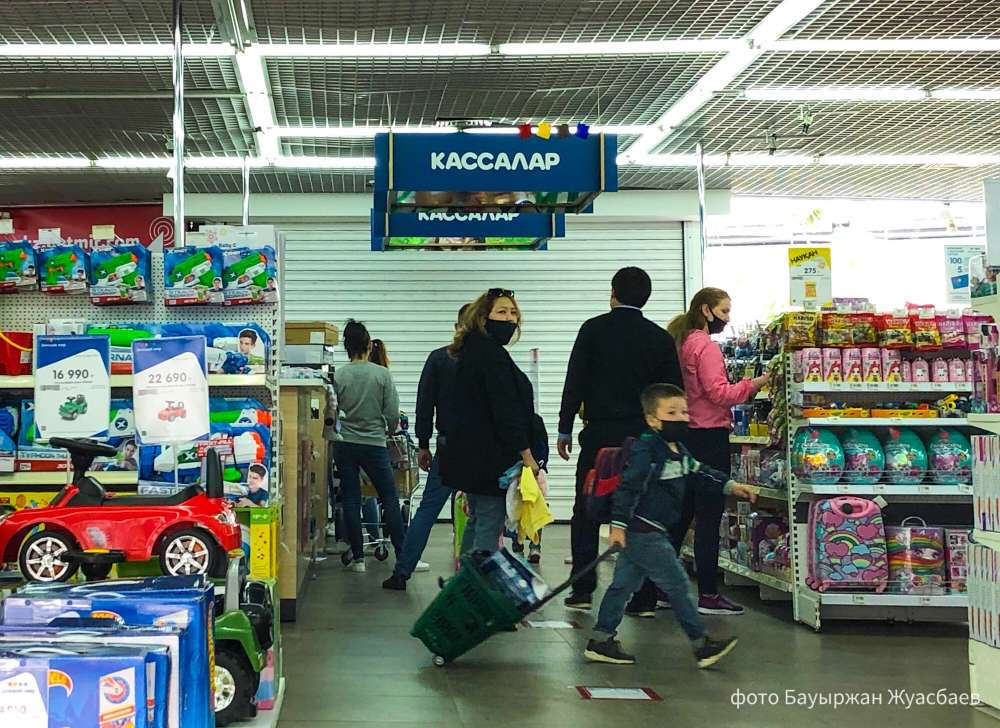 Для соблюдения дистанции посетителями некоторые сотрудники магазинов подошли к работе творчески, разместив яркие указатели и маршруты. Однако следовать им астанчане пока не привыкли.