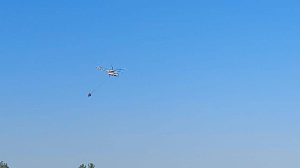 Задействован вертолёт Казавиаспас МЧС с водно-сливным устройством. На данный момент авиацией МЧС на очаги пожара сброшено более 80 тонн воды.