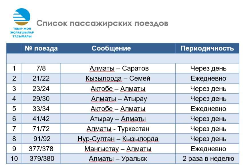 «Время будет изменяться. Принимаются все необходимые меры, чтобы оно было максимально приближенно к привычному движению. Разница в протяженности путей составляет порядка 10%, то есть участок железной дороги "Жезказган – Жарык" на 10% длиннее чем участок через Шымкент и Туркестан. Но нужно понимать, что на каждом участке различная инфраструктура. Есть участки с однопутным движением, есть двухпутные. соответственно, оперативной службой АО "КТЖ", диспетчерами принимаются все необходимые меры для того, чтобы максимально быстро пропускать пассажирские поезда, но опять-таки с сохранением требований по обеспечению безопасности перевозки»,- добавил он.