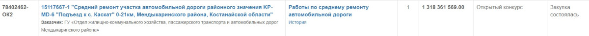 1,3 млрд тенге – ремонт подъезда к селу Каскат в Костанайской области. Закупка выглядит "рядовой", если бы не цена – более миллиарда тенге за 21 км.