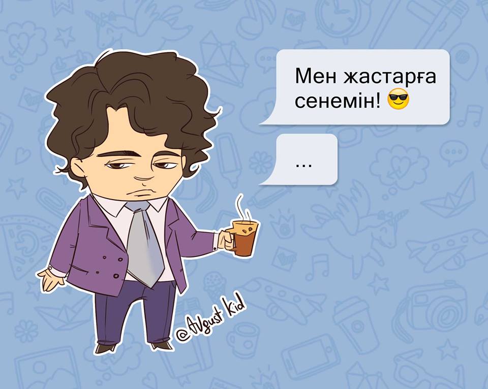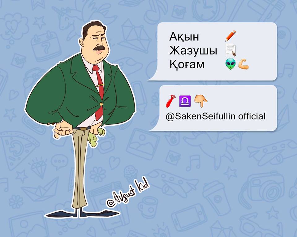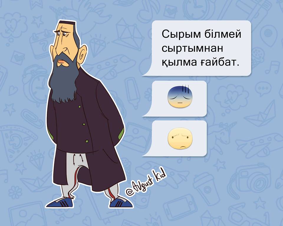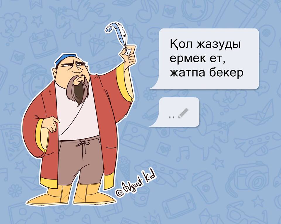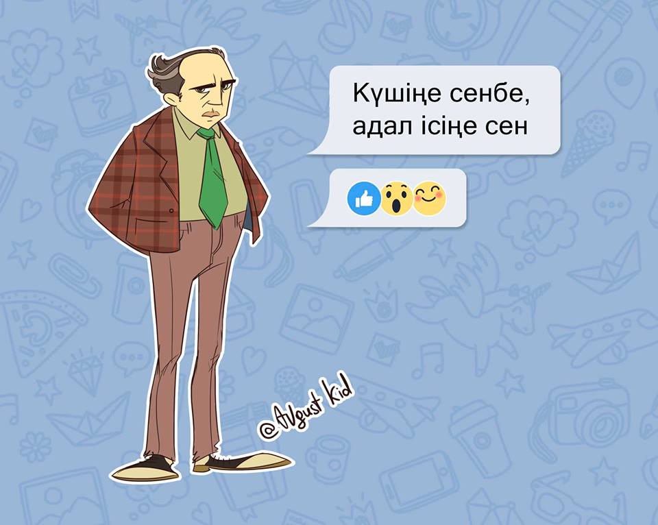 На своей странице в Facebook Бекзат Исамбергенов (известен в соцсетях под псевдонимом Август Кид) выложил серию иллюстраций и написал: «Разбавим ленту мультяшками. Как вам?».