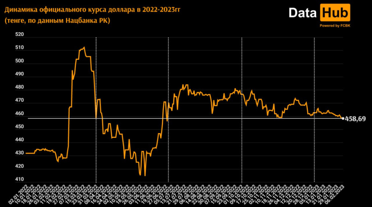 Курс доллара в Казахстане снизился. Официальная стоимость американской валюты 6 февраля - 458,69 тенге. Дешевле она была только 29 июня 2022 года, передаёт BaigeNews.kz со ссылкой на данные Telegram-канала DataHub_FCBK.