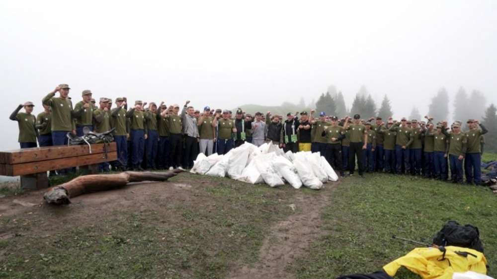 В акции приняли участие 130 курсантов Академии пограничной службы КНБ. Эко-активисты собрали на Кок-Жайляу почти полтонны отходов.
