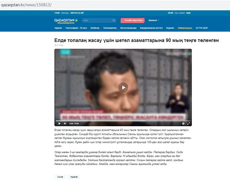 Кыргызстанец рассказал, что ему предложили 90 тысяч тенге за участие в митинге в Алматы, передает BaigeNews.kz. Видео опубликовал телеканал Qazaqstan.