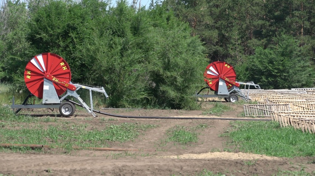 Мастер питомника Василий Белов показывает гордость лесхоза: поливальные катушки. Их тоже приобрели на грант ОАЭ. Они значительно облегчают труд: раньше использовали дождевальную установку на базе трактора. Но она была слишком дорогая в использовании и постоянно ломалась.